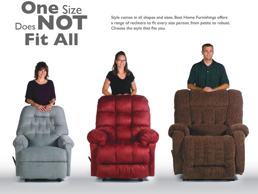 It is easy to find that right recliner or chair with Best Home Furnishings because their catalog is organized by size.